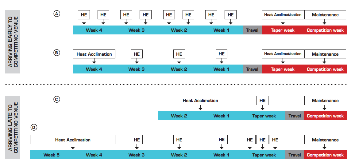 Cuando se compite en ambientes calurosos es importante realizar adaptaciones para poder competir con la menor perdida de rendimiento deportivo. Cada entrenador o fisiólogo deberá estudiar qué métodos, duración e intensidad del período de aclimatación será el más ideal para no comprometer el rendimiento del deportista en competición.